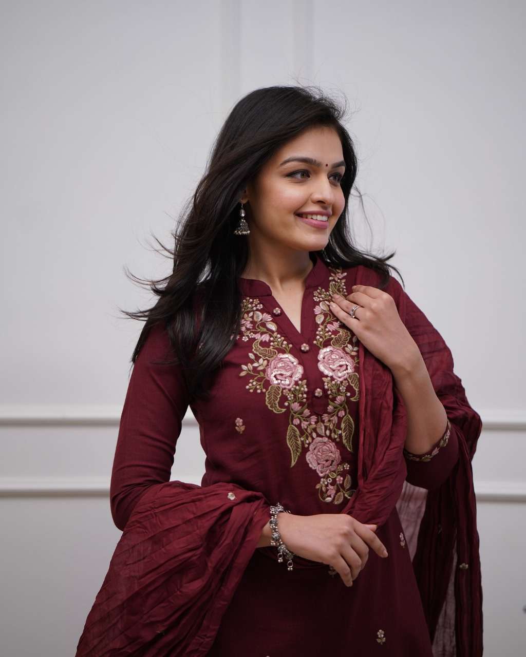 Women’s Cotton embroidery work kurta pant with mulmul dupatta set Size -M