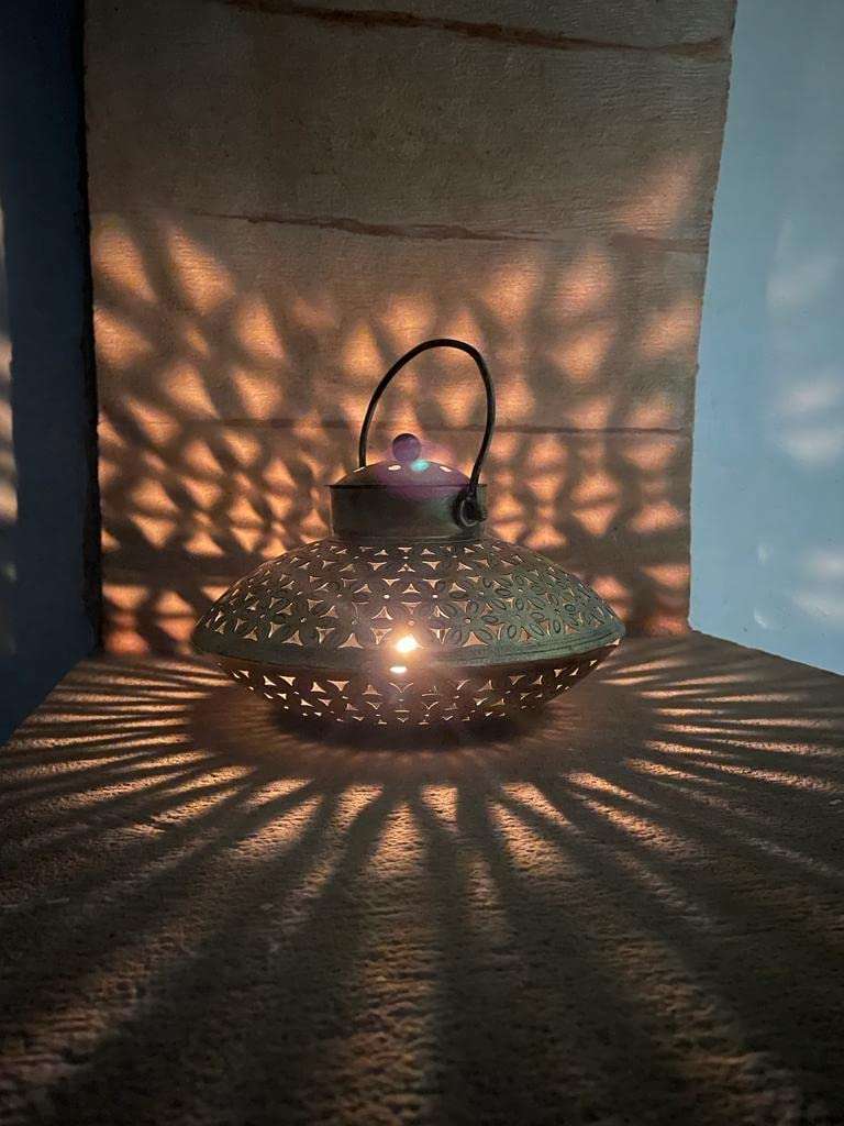 This decorative brass incense burner features a simple and elegant design. The burner has a small opening at the top for the incense stick and a wider base to catch ashes. Smoke gently flows from the opening, creating a calming and fragrant atmosphere.