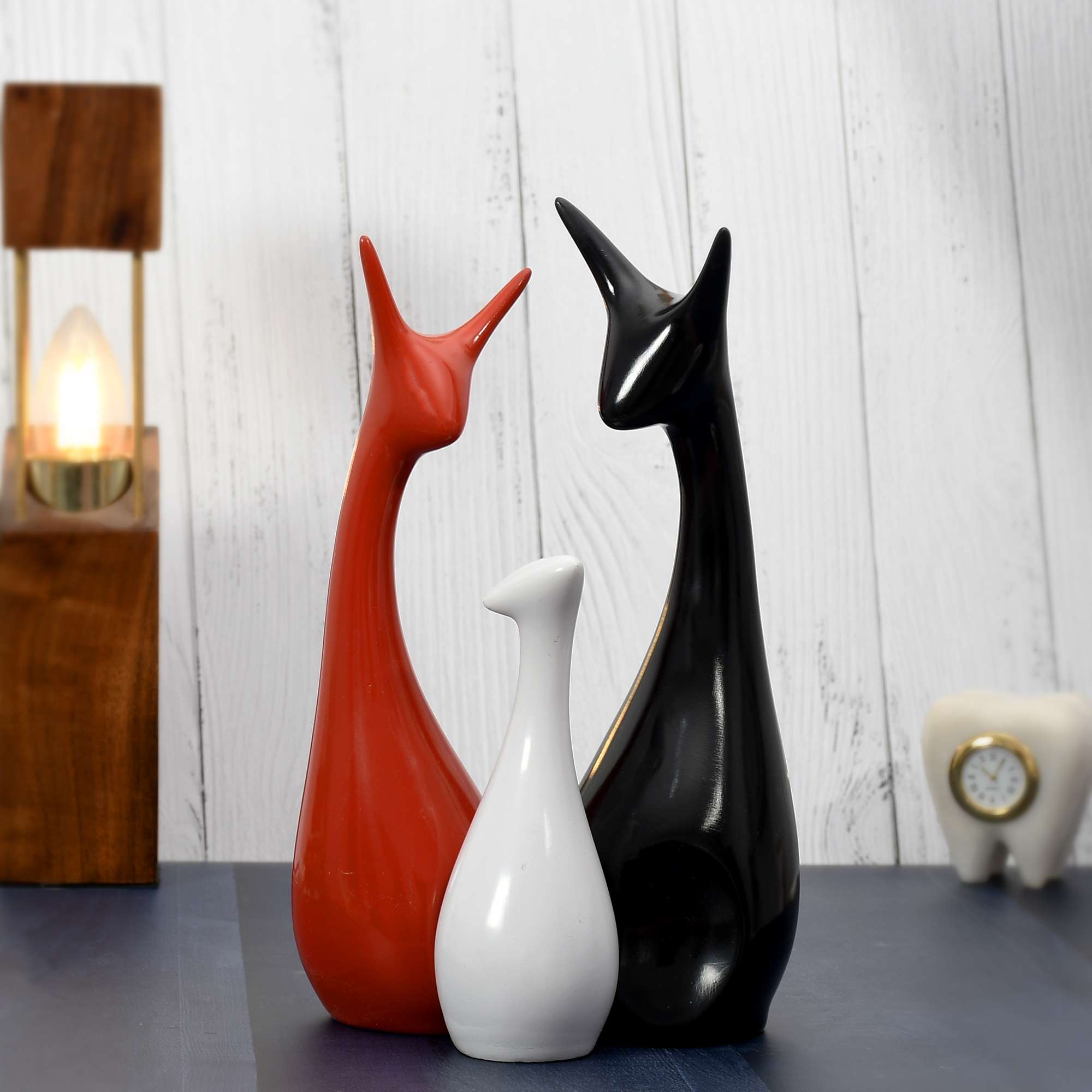 Bring an exquisite touch to your home with this intricate Lovely Giraffe Pair figurine set that has been crafted to add an artistic flair to your homes. Place it in your living room and let the serene design enhance the overall appeal with leaps and bounds. Note : The Giraffe Pair showpiece can be matched with other decorative objects from our collection to have an abstract decor setup.