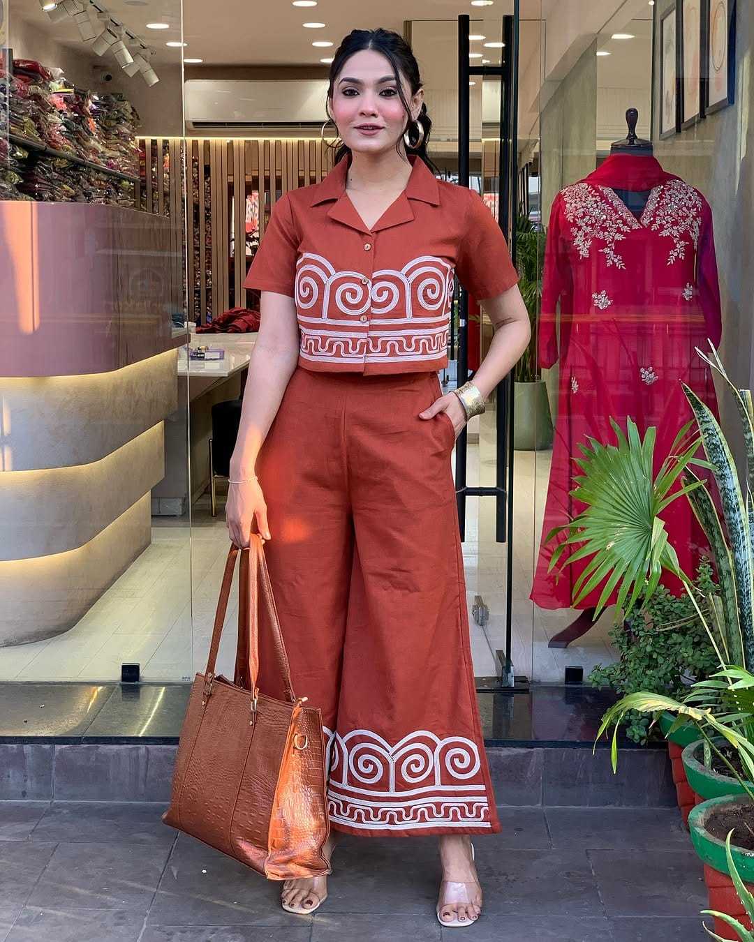 Orange Color EmbroideOrange Cotton Co-Ord Set For Women’s and Girls Size-XL